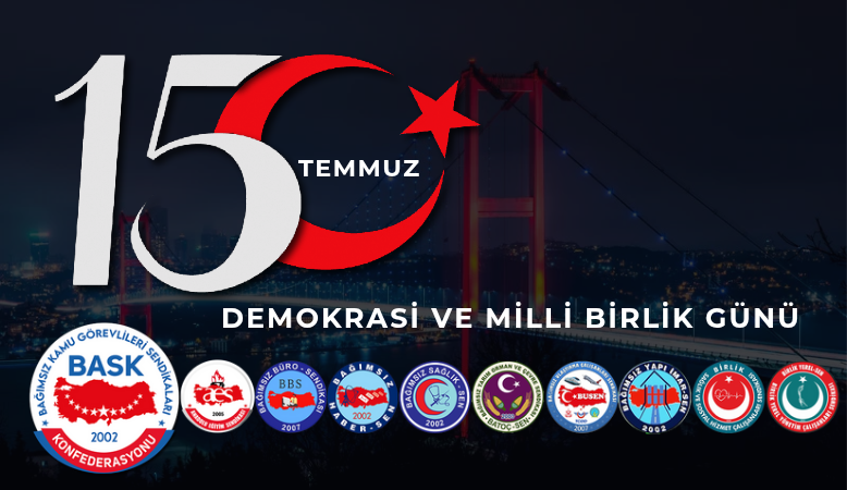 Bağımsızlığı şiar edinmiş, sivil bir demokratik kitle örgütü olmanın sorumluluğu ile 15 Temmuz 2016 hain darbe girişiminin yıldönümünde üye sendikalarımızla birlikte; Anayasamızın, devletin, anayasal kurumların ve demokrasinin yanında olduğumuzu ve olacağımızı tekrarlıyoruz.